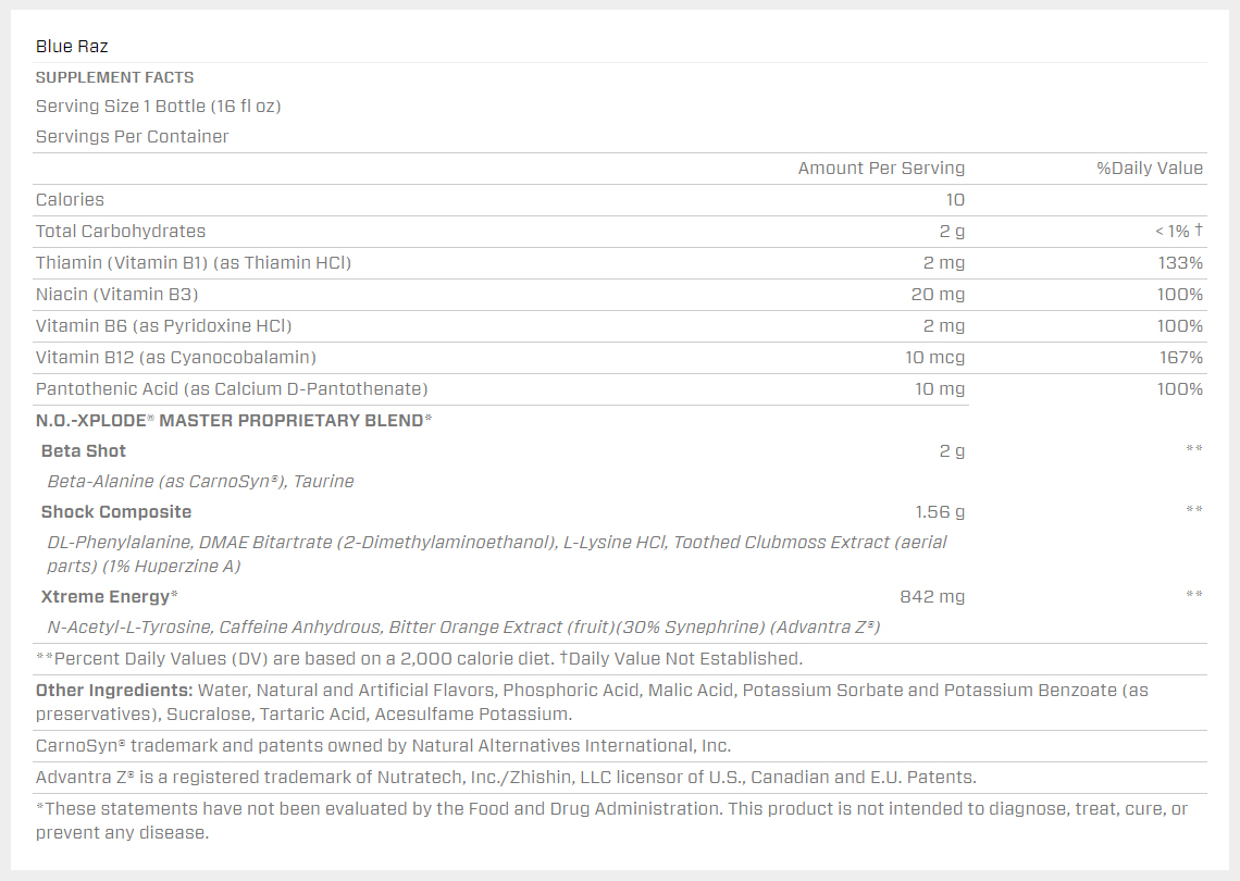 BSN- Supplements- NO Xplode RTD- Nutrition Facts