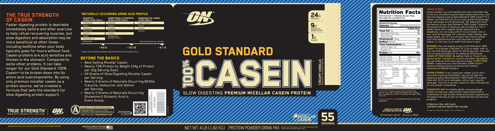 Optimum Nutrition- Gold Standard 100% Casein 4lb Vanilla Label
